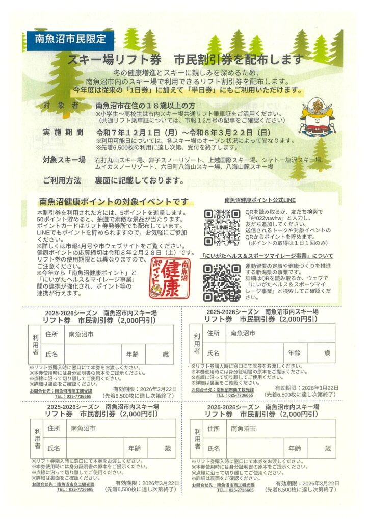 シャトー塩沢スキー場をご利用される南魚沼市民限定の市民割引券が使えます!